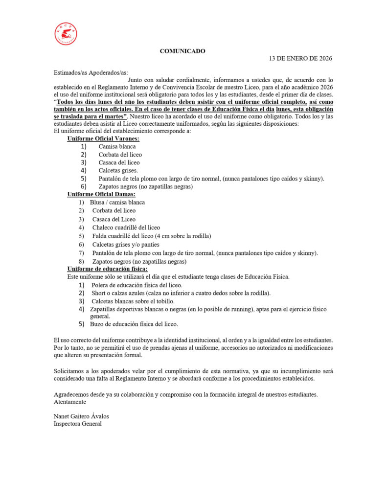 A contar del 09 de diciembre 2025, comienza el proceso de matricula correspondiente al año lectivo 2026.